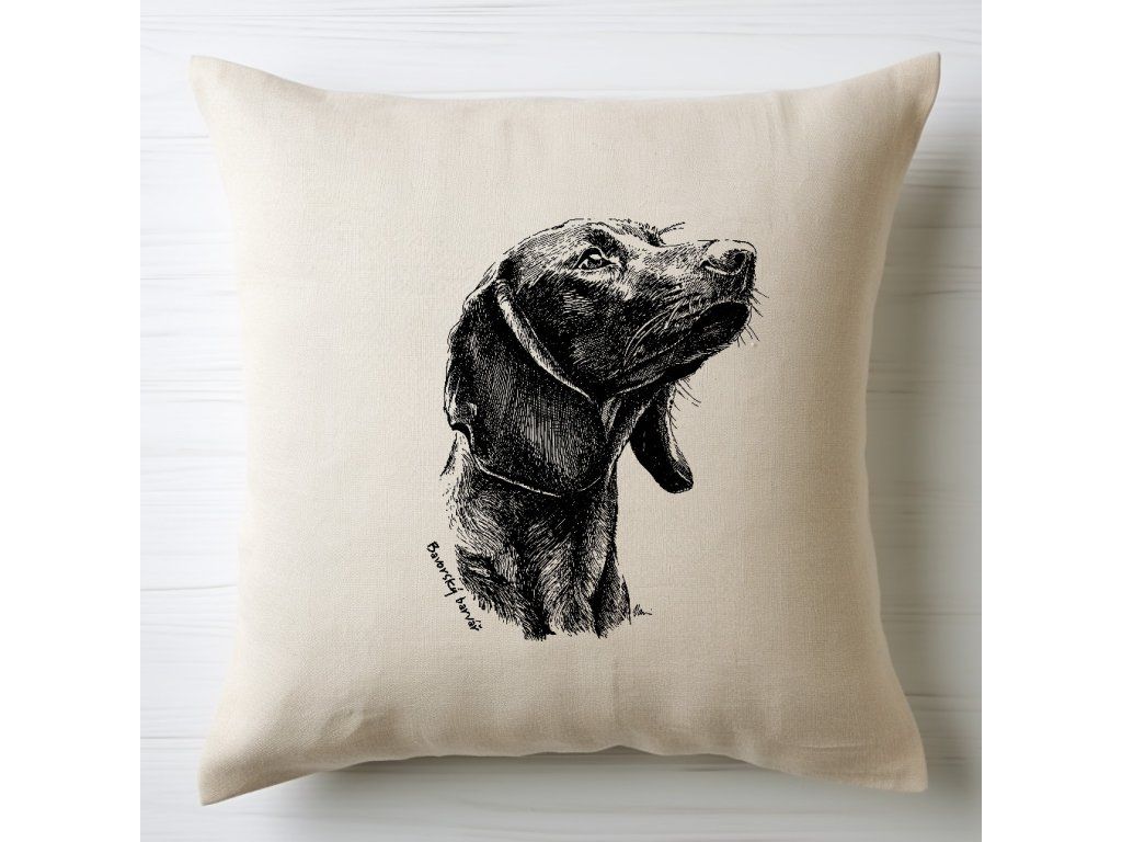 Bavorský barvář je symbolem neomylného čichu, vytrvalosti a hlubokého pouta mezi lovcem a psem. Tento motiv zachycuje soustředěný pohled a typické rysy tohoto ušlechtilého barváře, který je v kynologickém světě uznáván pro svou neocenitelnou práci na barvě. Detailní autorská perokresba vykresluje každý detail jeho tváře, čímž zdůrazňuje klidnou, ale odhodlanou povahu tohoto specialisty na dosled.
