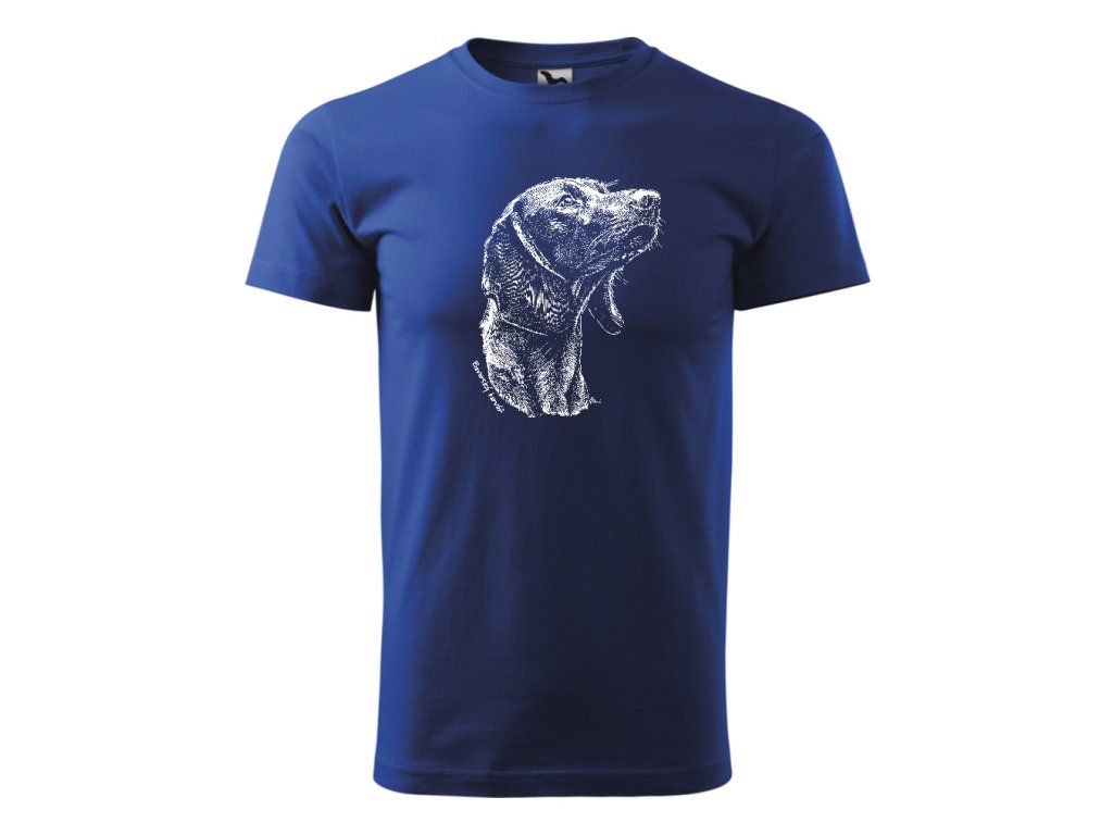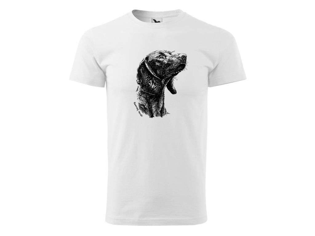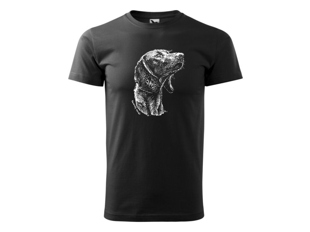 Bavorský barvář je symbolem neomylného čichu, vytrvalosti a hlubokého pouta mezi lovcem a psem. Tento motiv zachycuje soustředěný pohled a typické rysy tohoto ušlechtilého barváře, který je v kynologickém světě uznáván pro svou neocenitelnou práci na barvě. Detailní autorská perokresba vykresluje každý detail jeho tváře, čímž zdůrazňuje klidnou, ale odhodlanou povahu tohoto specialisty na dosled.